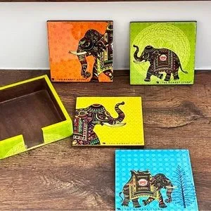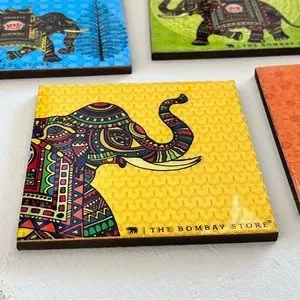 THE BOMBAY STORE Vintage Wooden Coasters Set of 4