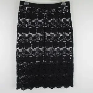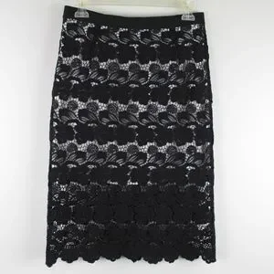 Rebecca Minkoff Angelica Black Floral Lace Overlay White Pencil Skirt 6
