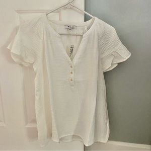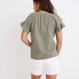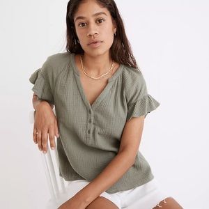 Madewell Lightspun Ruffle-Sleeve Henley Top
