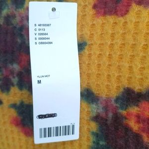 Out From Under Waffle Knit Long Sleeve Yellow Floral Cropped Top - Size M