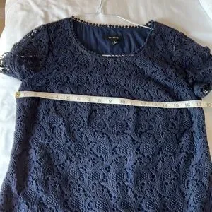 Talbots lace navy blue blouse. A dressy blouse may be accompanied by pants or skirt. Still in fair condition.
