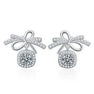Certified 1ct. t.w. Diamond Moissanite Bow Knot Stud Earrings NEW