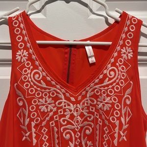 Fun v-neck tank with detailing. Tiny stain near zipper (see 4th photo). Hardly noticeable unless very close