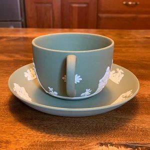 Vintage Wedgwood Sage Green Jasperware Teacup and Saucer Set