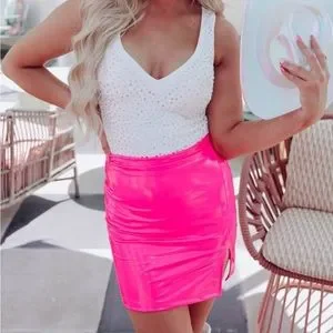 SOLD! 💗HP💗 Trendy Neon Hot Pink PU faux patent leather slit Mini Skirt Sz S