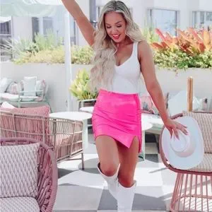 You will def be turning heads while wearing our "Pop And Pizzazz PU Mini Skirt"! This skirt will be super trendy styled with a corset top, boots, a trendy clutch and some hoop earrings.