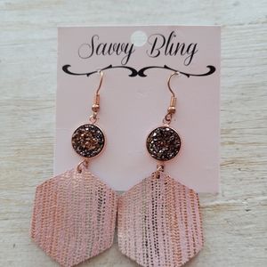 Druzy and Leather Drop Earings