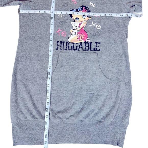 Good condition, pre-owned garment. Graphics show some signs of wear, as well as the Betty Boop brand tag is barely visible inside of the garment. I can’t make out the size on it.