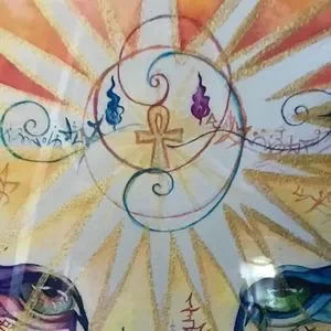 Breathtaking artwork with vibrant colors. There is a protection ankh at the 3rd eye. Excellent alter artwork with healing Light Language. The artwork will ship to you in a tube. The poster frame will not be included due to shipping difficulties.