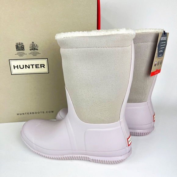 Hunter Original Roll Top Sherpa Lined Boots Haze Pink Waterproof Womens Size 9