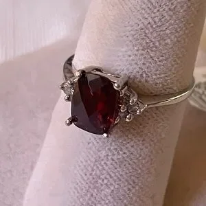 10K white gold 1.75 CTW Garnet & Diamonds ring BNWT