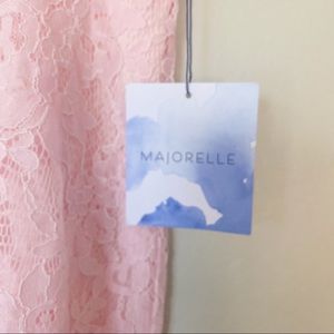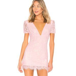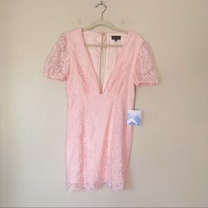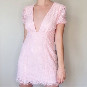 Majorelle Light Pink Deep V Short Sleeve Lace Mini Dress