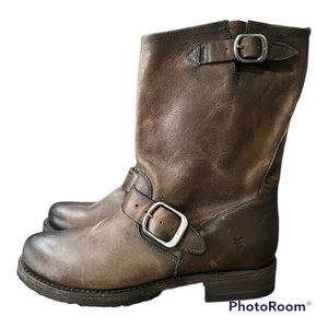 Frye Veronica Leather Buckle Short Moto Boots
