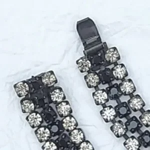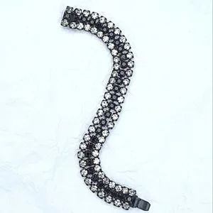 BLACK ENAMEL 3-STRAND RHINESTONE BRACELET - SHORTER LENGTH