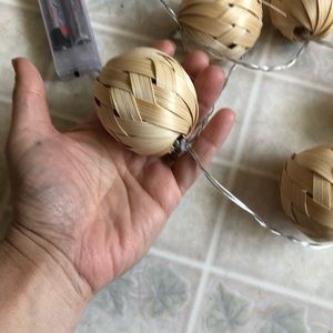 Woven Wooden Ball Light Up Garland 45” long