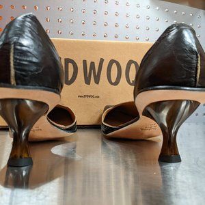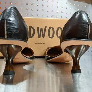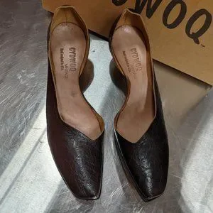 Hand made dark brown closed toe leather heels