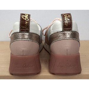 SAM EDELMAN White Pink Lace Up Fabric Leather Darsie Gold Sneakers Shoes Sz 8.5