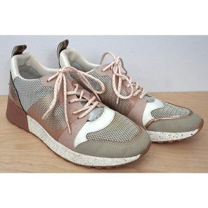 SAM EDELMAN White Pink Lace Up Fabric Leather Sneakers Shoes Size 8.5