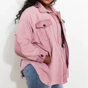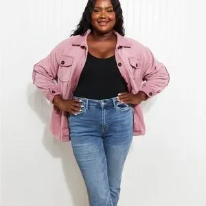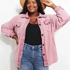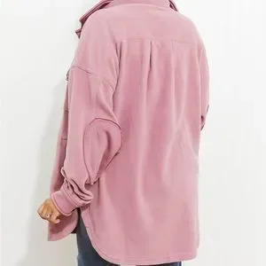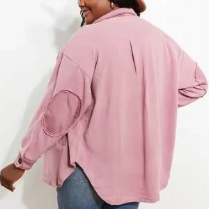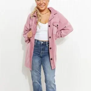 Light Rose Cozy in the Cabin Full Size Fleece Elbow Patch Shacket