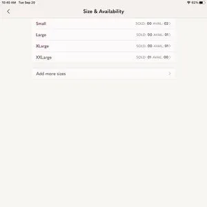 Sizes S,L, XL and XXL