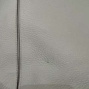 Kate spade shoulder bag mint green with scallop detailing at top. Purse is in good condition with small scuffed area on back of purse and a couple of discolorations on sides. Pictures included to show areas of imperfection