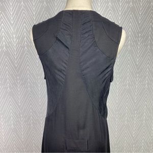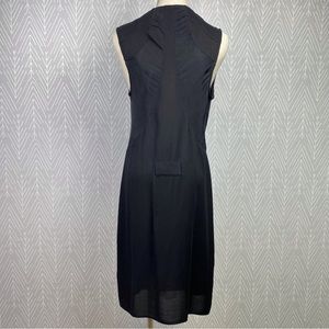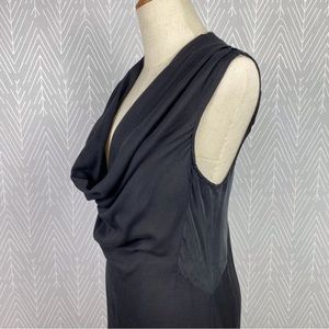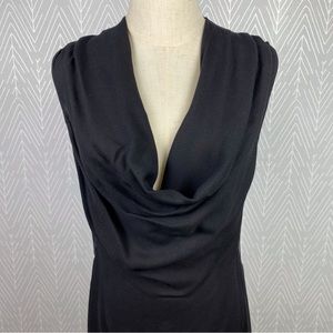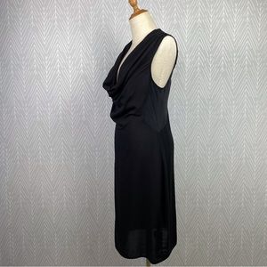 HELMUT LANG Cowl Neck Black Dress. Sleeveless, belt loop in back (no belt included), hem hits below knee. Silk inserts on upper back of bodice.