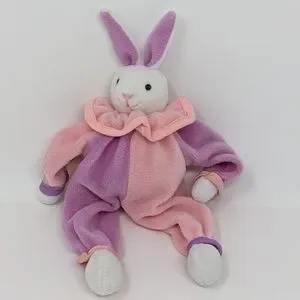 Russ Plush Bunny Clown Jester Pink Purple Floppy Small Stuffed Animal