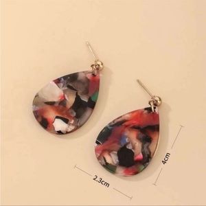 Color splattered acrylic drop earrings. Teardrop shaped. Each earring has a different mosaic type pattern. Lightweight! NWT!