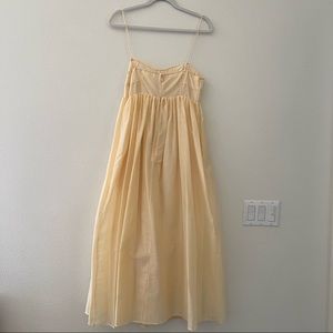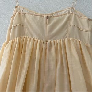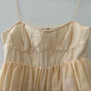 A structured corset-style bodice with the daintiest of spaghetti straps beautifully shapes a long cotton-and-silk gown destined for the dance floor.