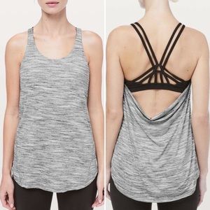 Pre-owned condition. Lululemon Moment To Movement 2-In-1 Tank in a size 6. Color: Space Dye Camo Black White / Black. Lightweight fabric, a drapey fit, and a built-in strappy-back bra. Light support. Thanks for viewing!