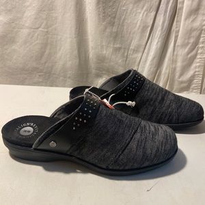 Revitalign gray & black leather & fabric mules size 10 NWT