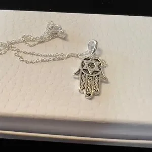 Good quality. New. Hamsa. Necklace. Chain size 16” & 18”.