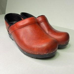 Dansko Red Leather Professional Comfort Mule Slip On Clogs Size 37 / 7