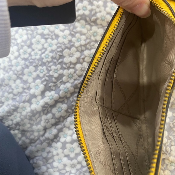 Micheal Kors Mott clutch in leather with silver-tone hardware. This clutch feature one main compartment, slip pocket, 6 cards slots, flap closure and removable strap