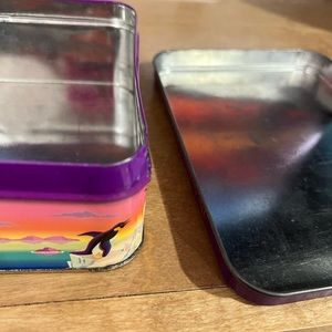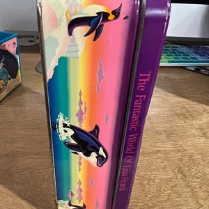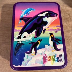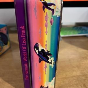 Vintage Lisa Frank RARE Max Splash tin. This is a vintage piece and has a decent amount of wear. The front picture still looks amazing. There is some scratches, rusts on the corners and some dents and dings….please see all photos for conditions. No returns. Box still closes just fine. There is one dent on the edge of the front cover. I tried to show it as best as I could in the photos. Feel free to ask any questions.