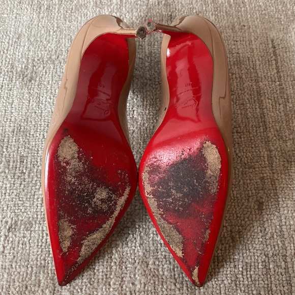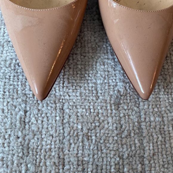 Perhaps the most iconic mainstay of all Christian Louboutin designs, the Kate is a classic pointy pump with a slender 100 mm stiletto heel. With its timeless appeal and sleek lines, this model is an absolute essential in the wardrobe of any contemporary fashionista. Crafted from glossy patent leather in Nude – a mid-nude tone - and framed with a signature red sole. Great condition worn a few times, size 40. Comes with dust bags. located Toronto. POP