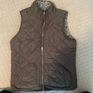 Olive green and plush reversible vest from Maurice's. Size small with pockets on both sides. Cute vest for fall. Worn a handful of times. Plush side is still soft and doesn't look worn.