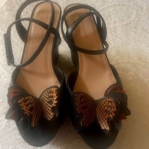 Bottega Veneta platform sandals with embossed butterfly in black leather. Butterfly python detail on top. Never worn. Size 36