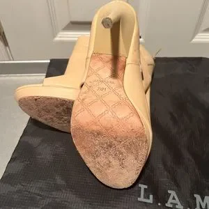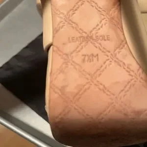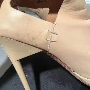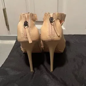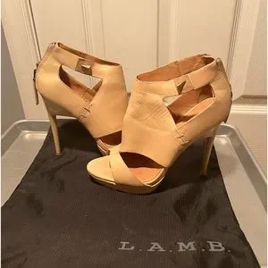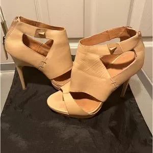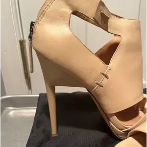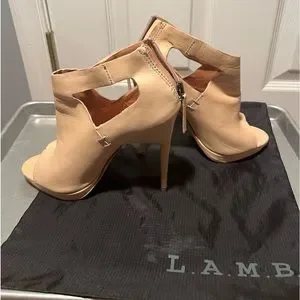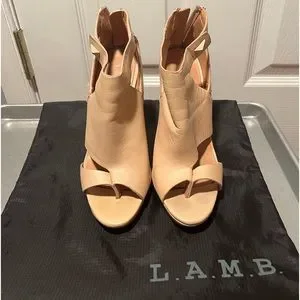 Authentic lamb bootie style open toe heel, nude leather, very high arch, 5in heel, I wore them once & the incline was too much