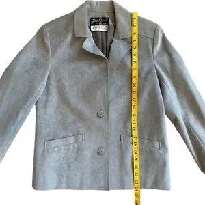 VINTAGE GINO ROSSI FOR WILSON GRAY SILVER ULTRA SUEDE BLAZER JACKET SZ 8