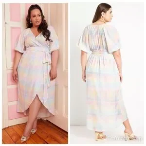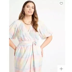 NWT ELOQUII Full Sleeve Wrap Dress - Lily Plaid