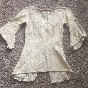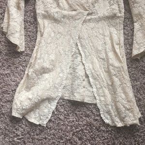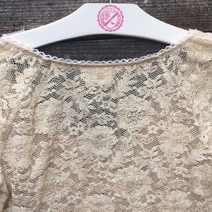 Minimal wear, excellent condition. Vintage 90's champagne/nude lace bell sleeve top