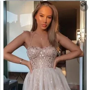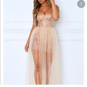 Super beautiful bustier dress with gold shimmer. Mesh sheer skirt on the bottom. Beautiful but never had a place to wear it.