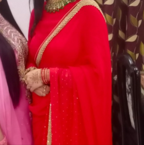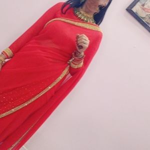 Red Beautiful Saree for Weddings Function Birthday Karwa and Diwali Party gowns