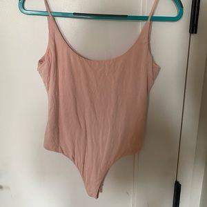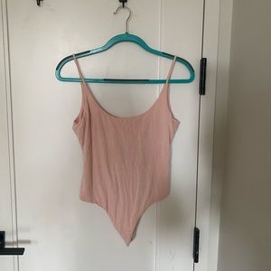 Color blush. Soft jersey knit fabric. Stretch fit. Pointe knit fabric. Thong silhouette and thin shoulder strap.