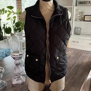 Black Quilted Vest With Gold Hardware- size medium ♥️