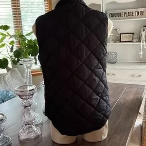 So trendy and perfect for fall! New without tags (never worn) black quilted vest with gold zipper and button. Size medium. True the size fit- not oversized- purchased from Francesca’s Boutique so it’s more of a juniors fit. Brand is Quinn. I’m cleaning out my closet so bundle to save!