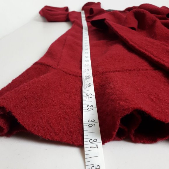 This mid-length wrap sweater with ruffled detail is so feminine. Makes a great layer over your outfit during cool and dry weather conditions. Ideal for casual, leisure, dressy or formal occasions. Perfect for early fall and winter. Great condition. Features: Casual, leisure, dressy, formal Adjustable fit Mid-length Long sleeve Ruffle trims Belted 100% Wool Size: S Approx Measurements: Bust 18" Sleeve 19" Length 37" **New to Poshmark? GET $15 OFF your first purchase when you sign up and use my code SUITYOURSTYLE