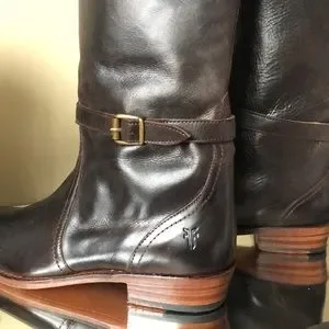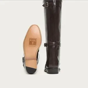 Frye Womens Dorado Buckle Riding Boot Dark Brown Full Grain