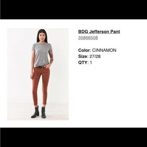 Urban Outfitters | BDG Jefferson Pant in Cinnamon! Size 27. Low rise, ankle cut with zippers on the side of the ankle. Great condition, only worn a few times. Original retail price is $59!